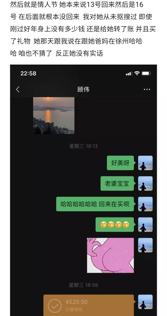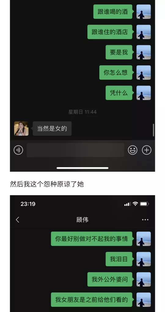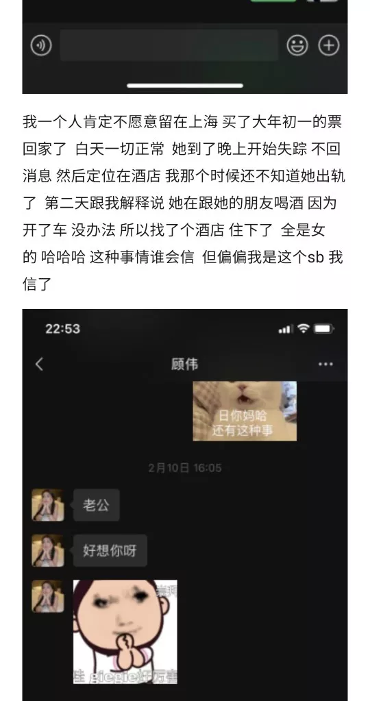山东邹城顾伟,这下出名了,和男友恋爱448天,瞅准男友回家过年的时机,彻底解放本性,年初一约炮约到初三,被男友质问,年初八,好家伙,男小三开嘲讽了,果然是臭气相投。