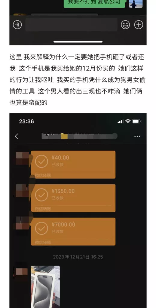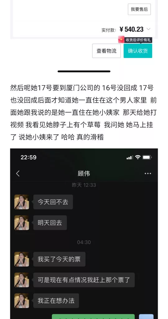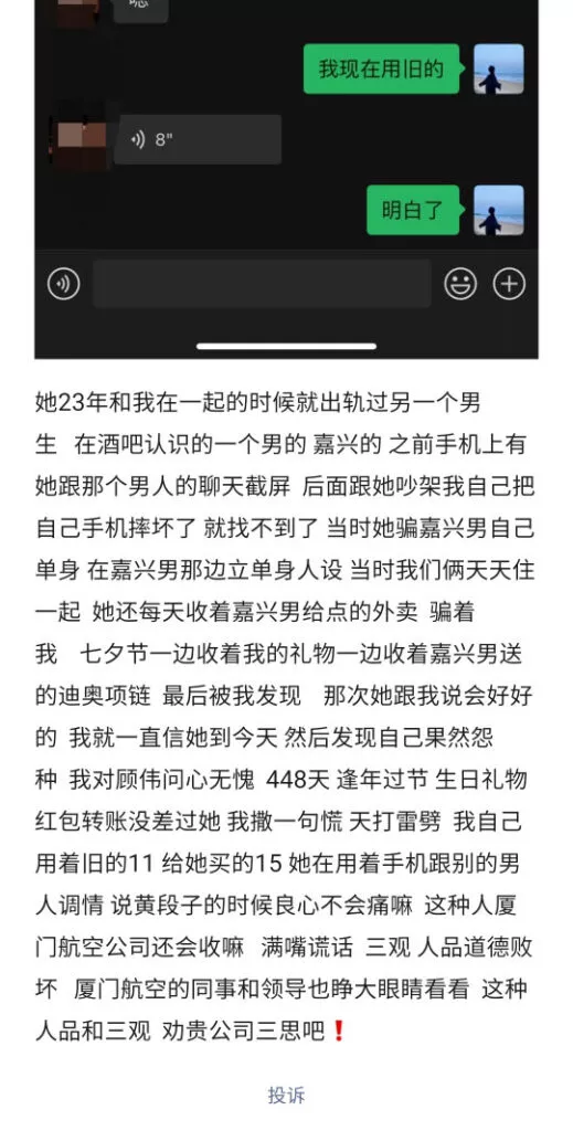 山东邹城厦航空姐顾伟恋爱448天出轨劈腿约炮被男小三嘲讽原配