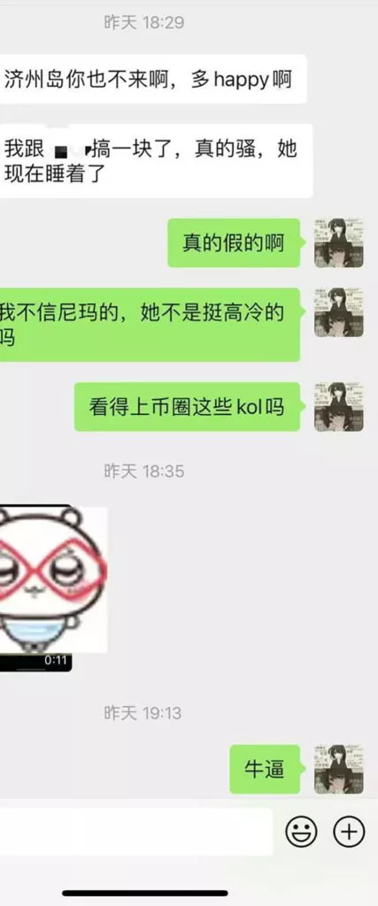 网传的另一条视频中,被贴了几张女主照片,瓜老师顺藤摸瓜后发现,女主本身确实为币圈知名人士,也确实参与了济州岛STONKS(3.22举行)虚拟货币会议,但不知道为什么与此视频联系在一起。