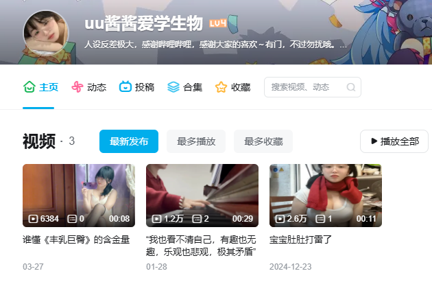 B站新晋的人气LL网红UU酱,因热爱生物而受到关注。在站内,她以反差极大的形象自我标榜,巧妙地吸引观众的目光。然而,近期被曝出的一些大尺度视频则揭露了她的真实面貌,实际上,她的定位更像是一位福利姬。