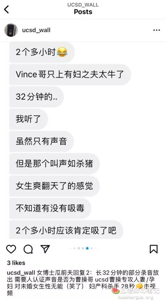 加州大学女博士情夫Vince被曝光化身UCSD曹Cao 专攻人妻 32分钟偷情音频 28秒拳交猪叫 苦主儿子面前Cao他妈 舔B舔到喷尿 结合之前种种 被评价为人间行走的恶魔 女博士照片