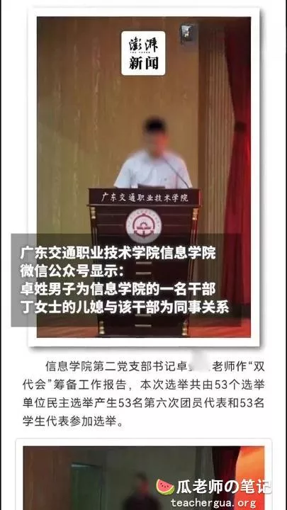 根据前线最新消息,广东交通职业技术学院干部处长,卓某与咱们的爆料人丁阿姨的儿媳妇,是同一办公室的同事
